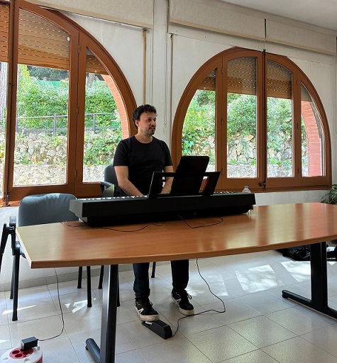 20/02/2024 Set cantaires, més el director, han realitzat la primera sessió del Taller musical a l’Escola Tramuntana, de Sant Feliu de Llobregat, per a joves que presenten alguna diversitat funcional o cognitiva, amb la col·laboració de la Fundació «La Caixa».